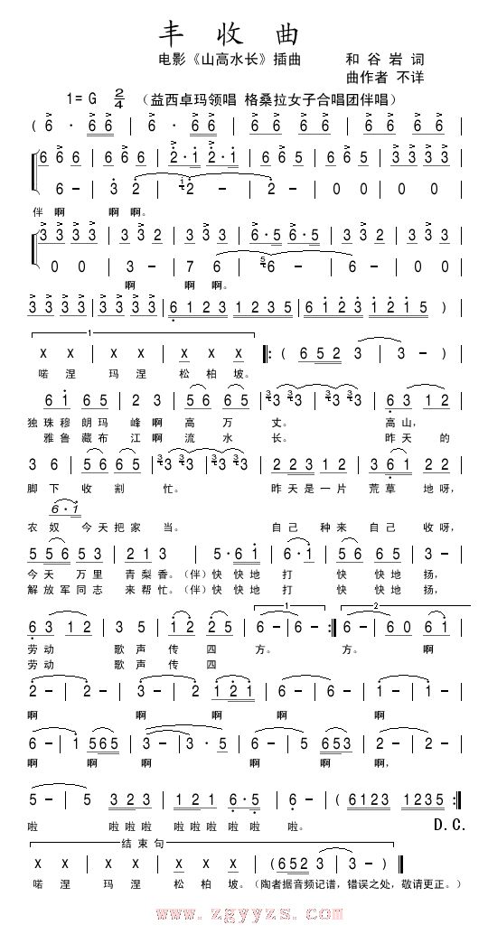 丰收曲简谱上传者为网友上传,原创作者为网络转载,歌曲原唱歌手为佚名,本简谱为图片格式,表现形式为,音乐性质为流行金曲。