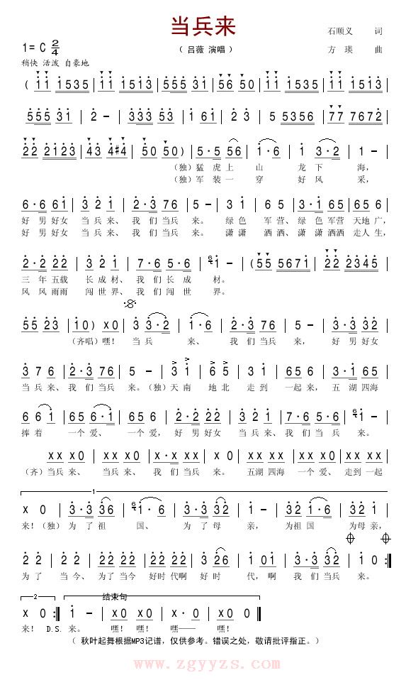 当兵来简谱上传者为网友上传,原创作者为网络转载,歌曲原唱歌手为佚名,本简谱为图片格式,表现形式为,音乐性质为流行金曲。