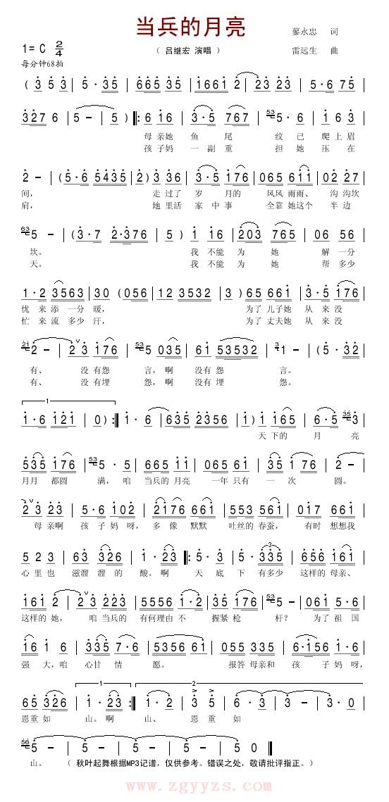 当兵的月亮简谱上传者为网友上传,原创作者为网络转载,歌曲原唱歌手为佚名,本简谱为图片格式,表现形式为,音乐性质为流行金曲。