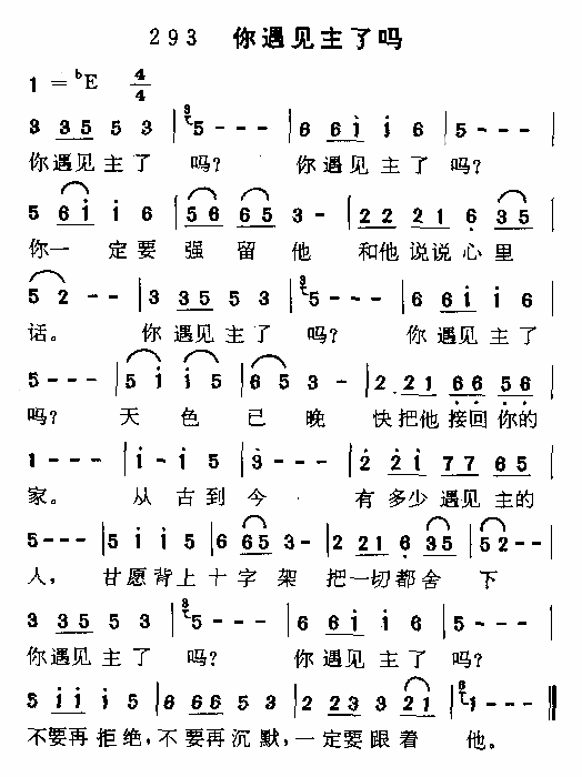 你遇见主了吗简谱上传者为网友上传,原创作者为网络转载,歌曲原唱歌手为佚名,本简谱为图片格式,表现形式为,音乐性质为流行金曲。