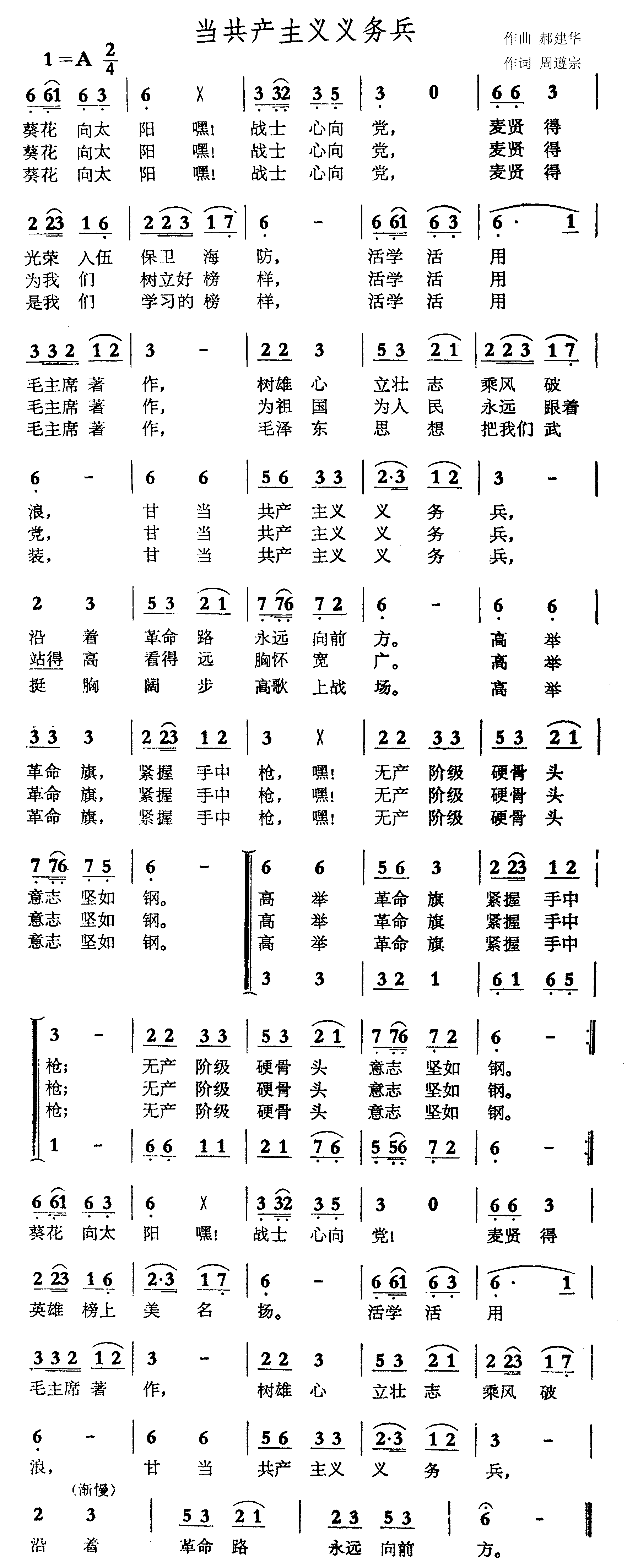 当共产主义义务兵简谱上传者为网友上传,原创作者为网络转载,歌曲原唱歌手为佚名,本简谱为图片格式,表现形式为,音乐性质为流行金曲。
