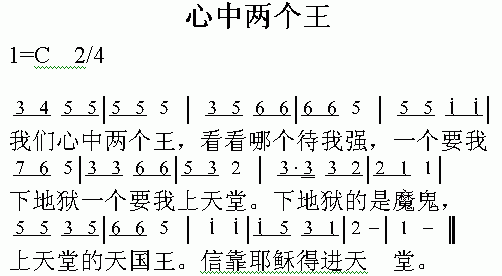 心中两个王简谱上传者为网友上传,原创作者为网络转载,歌曲原唱歌手为佚名,本简谱为图片格式,表现形式为,音乐性质为流行金曲。