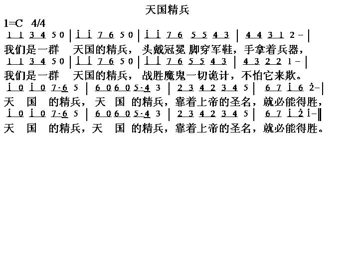 天国精兵简谱上传者为网友上传,原创作者为网络转载,歌曲原唱歌手为佚名,本简谱为图片格式,表现形式为,音乐性质为流行金曲。