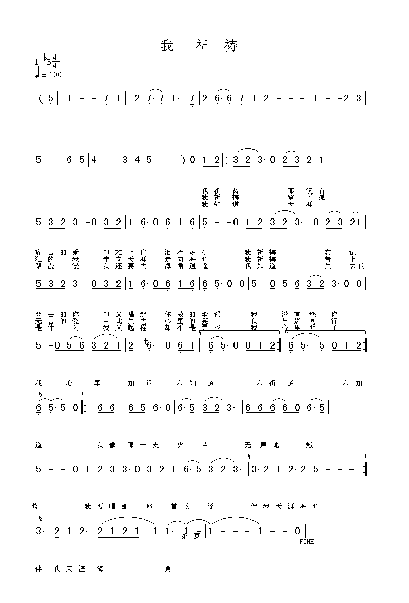 我祈祷简谱上传者为网友上传,原创作者为网络转载,歌曲原唱歌手为佚名,本简谱为图片格式,表现形式为,音乐性质为流行金曲。