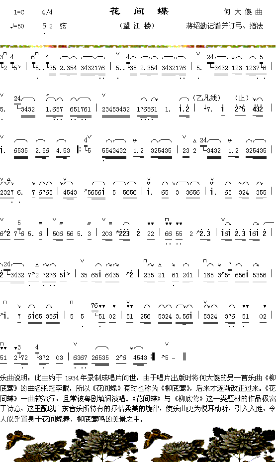 花间蝶简谱上传者为网友上传,原创作者为网络转载,歌曲原唱歌手为佚名,本简谱为图片格式,表现形式为,音乐性质为流行金曲。