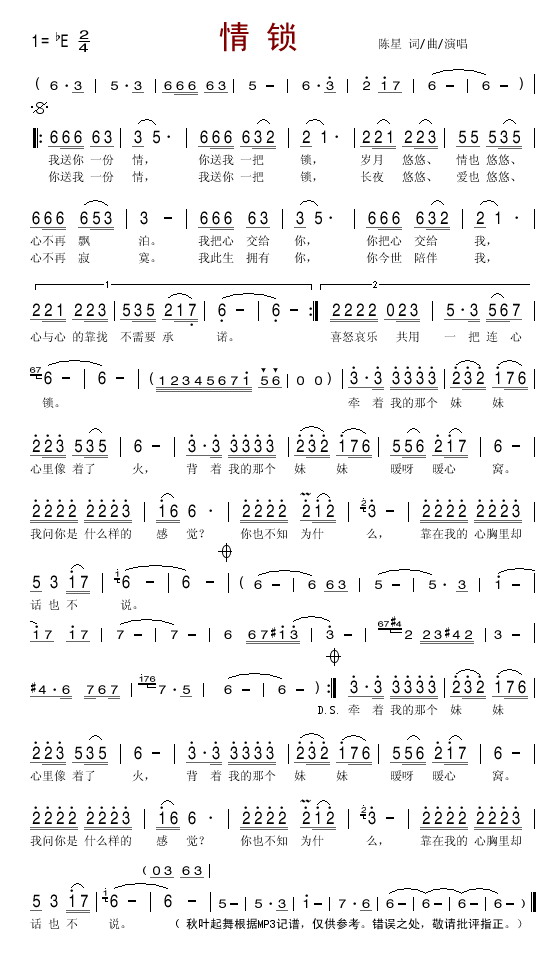 情锁简谱上传者为网友上传,原创作者为网络转载,歌曲原唱歌手为佚名,本简谱为图片格式,表现形式为,音乐性质为流行金曲。