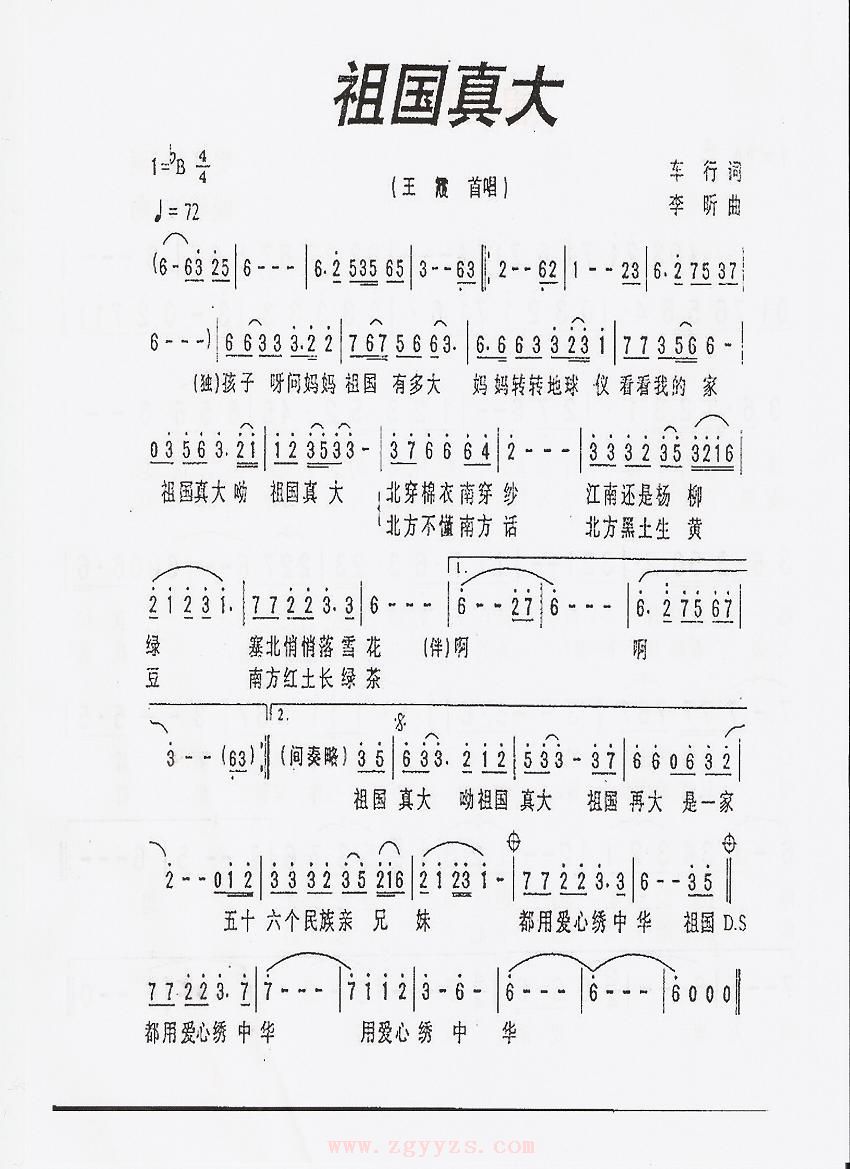 祖国真大简谱上传者为网友上传,原创作者为网络转载,歌曲原唱歌手为佚名,本简谱为图片格式,表现形式为,音乐性质为流行金曲。