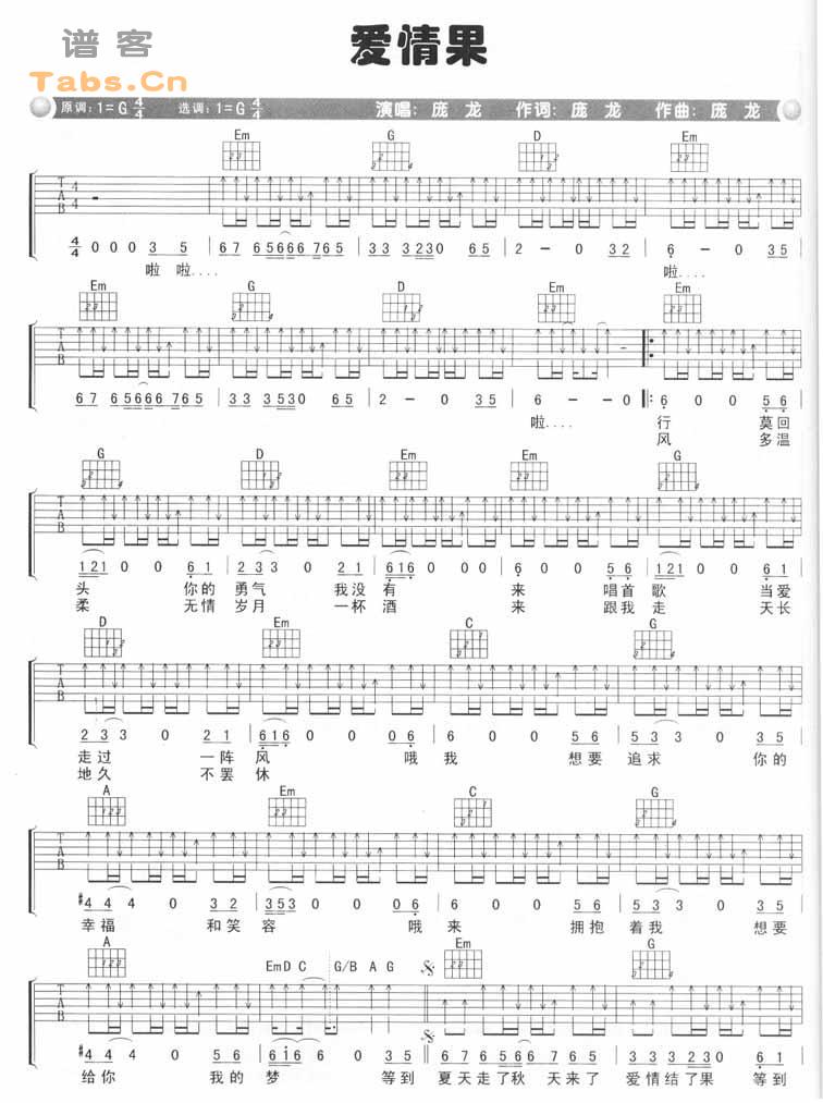 爱情果简谱上传者为网友上传,原创作者为网络转载,歌曲原唱歌手为佚名,本简谱为图片格式,表现形式为,音乐性质为流行金曲。