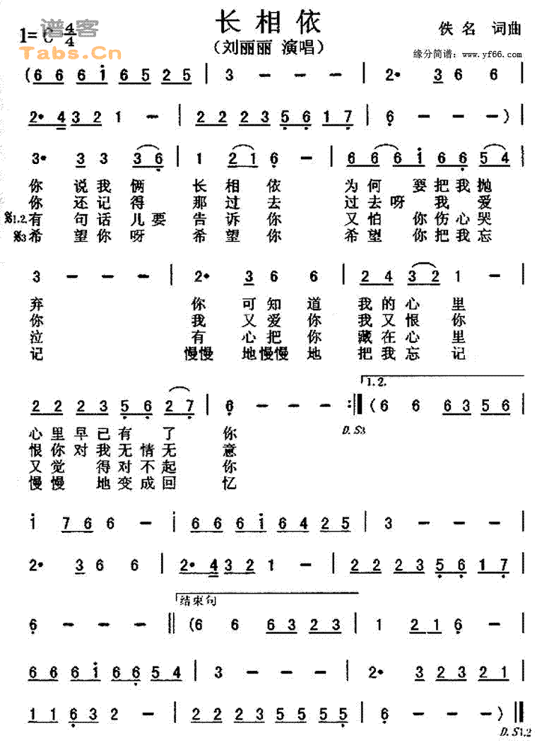 长相依简谱上传者为网友上传,原创作者为网络转载,歌曲原唱歌手为佚名,本简谱为图片格式,表现形式为,音乐性质为流行金曲。