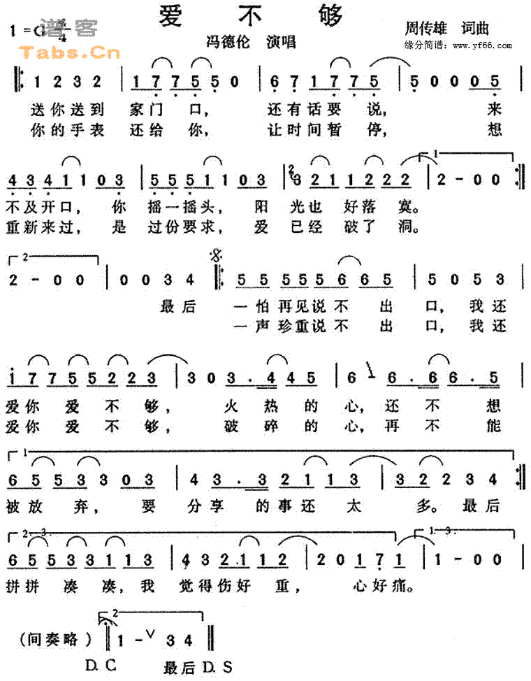 爱不够简谱上传者为网友上传,原创作者为网络转载,歌曲原唱歌手为佚名,本简谱为图片格式,表现形式为,音乐性质为流行金曲。