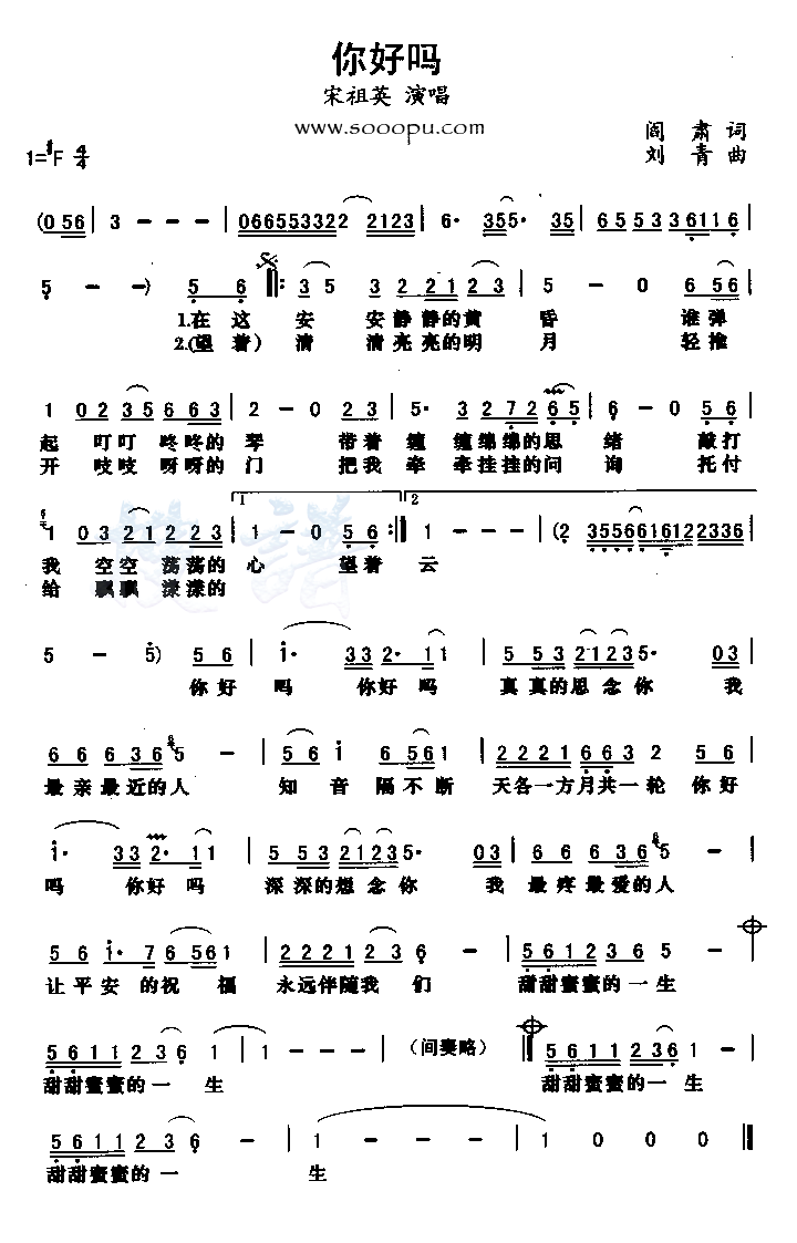你好吗简谱上传者为网友上传,原创作者为网络转载,歌曲原唱歌手为佚名,本简谱为图片格式,表现形式为,音乐性质为流行金曲。