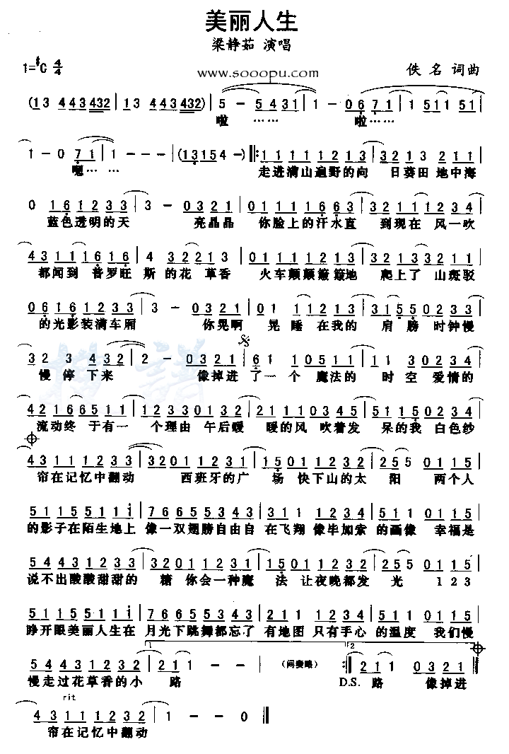 美丽人生简谱上传者为网友上传,原创作者为网络转载,歌曲原唱歌手为佚名,本简谱为图片格式,表现形式为,音乐性质为流行金曲。