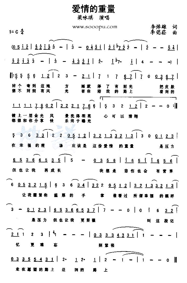 爱情的重量简谱上传者为网友上传,原创作者为网络转载,歌曲原唱歌手为佚名,本简谱为图片格式,表现形式为,音乐性质为流行金曲。