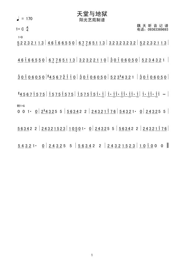 天堂与地狱简谱上传者为网友上传,原创作者为网络转载,歌曲原唱歌手为佚名,本简谱为图片格式,表现形式为,音乐性质为流行金曲。