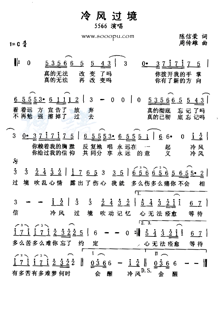 冷风过境简谱上传者为网友上传,原创作者为网络转载,歌曲原唱歌手为佚名,本简谱为图片格式,表现形式为,音乐性质为流行金曲。