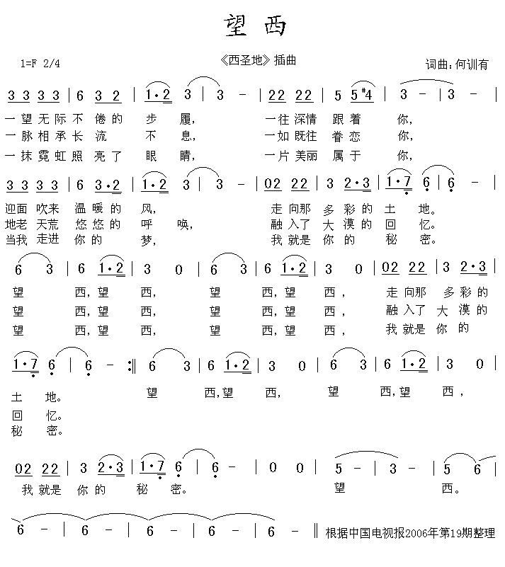望西简谱上传者为网友上传,原创作者为网络转载,歌曲原唱歌手为佚名,本简谱为图片格式,表现形式为,音乐性质为流行金曲。