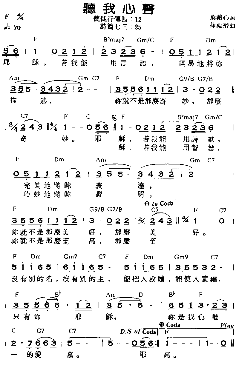 听我心声简谱上传者为网友上传,原创作者为网络转载,歌曲原唱歌手为佚名,本简谱为图片格式,表现形式为,音乐性质为流行金曲。
