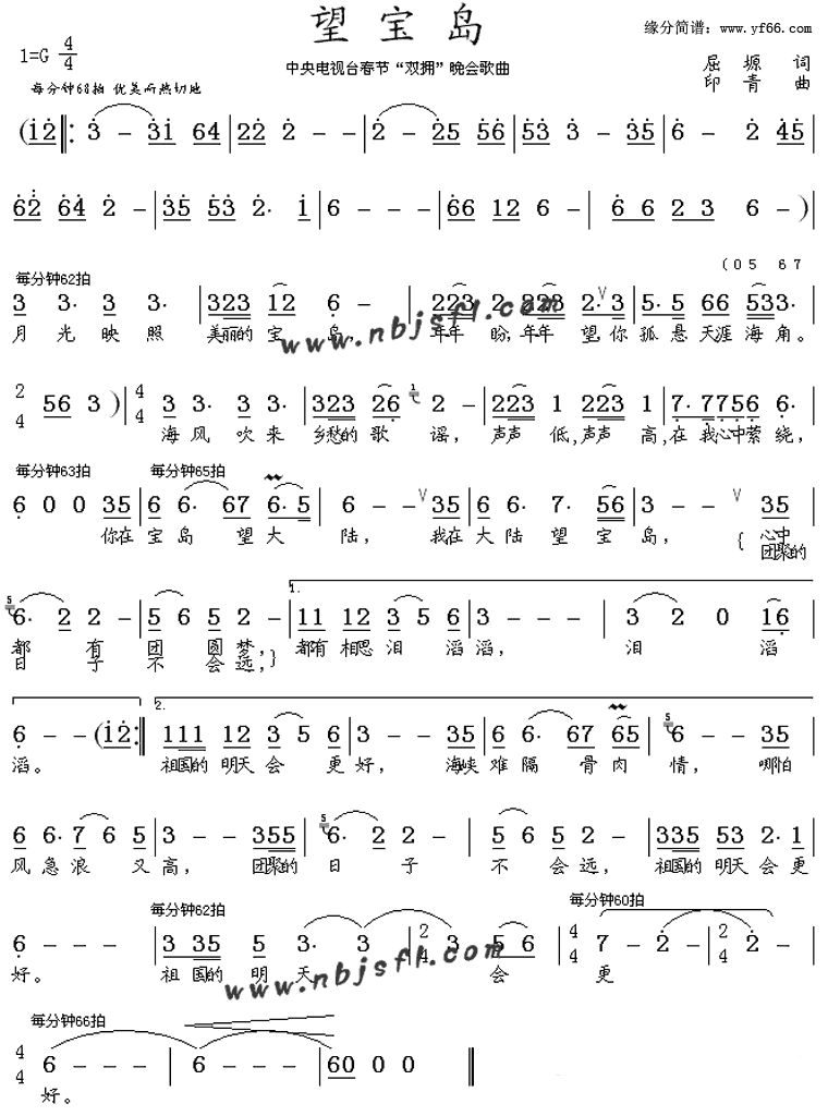 望宝岛简谱上传者为网友上传,原创作者为网络转载,歌曲原唱歌手为佚名,本简谱为图片格式,表现形式为,音乐性质为流行金曲。