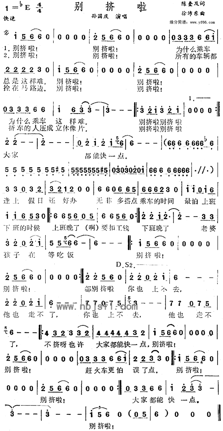 别挤啦简谱上传者为网友上传,原创作者为网络转载,歌曲原唱歌手为佚名,本简谱为图片格式,表现形式为,音乐性质为流行金曲。