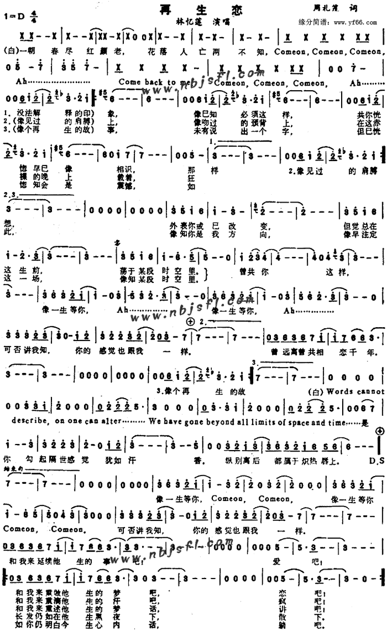 再生恋简谱上传者为网友上传,原创作者为网络转载,歌曲原唱歌手为佚名,本简谱为图片格式,表现形式为,音乐性质为流行金曲。