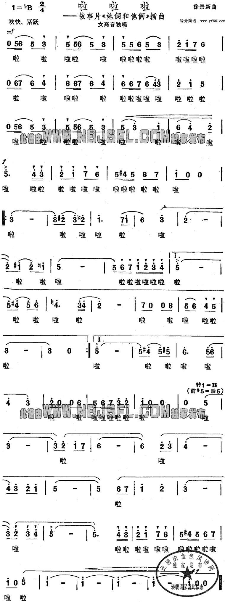 啦啦啦《她俩和他俩》插曲简谱上传者为网友上传,原创作者为网络转载,歌曲原唱歌手为佚名,本简谱为图片格式,表现形式为,音乐性质为流行金曲。