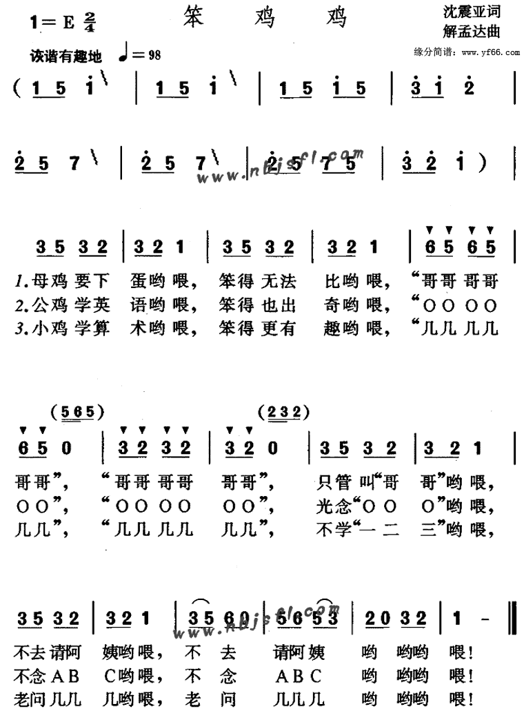 笨鸡鸡简谱上传者为网友上传,原创作者为网络转载,歌曲原唱歌手为佚名,本简谱为图片格式,表现形式为,音乐性质为流行金曲。
