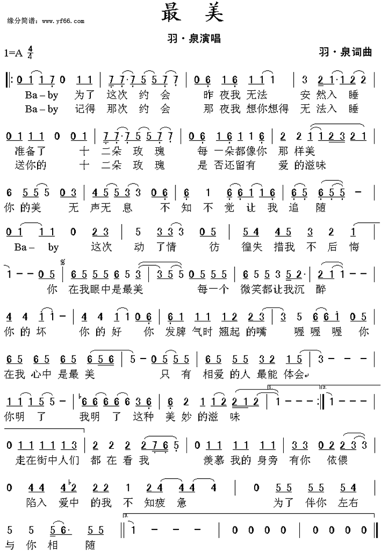 最美简谱上传者为网友上传,原创作者为网络转载,歌曲原唱歌手为佚名,本简谱为图片格式,表现形式为,音乐性质为流行金曲。