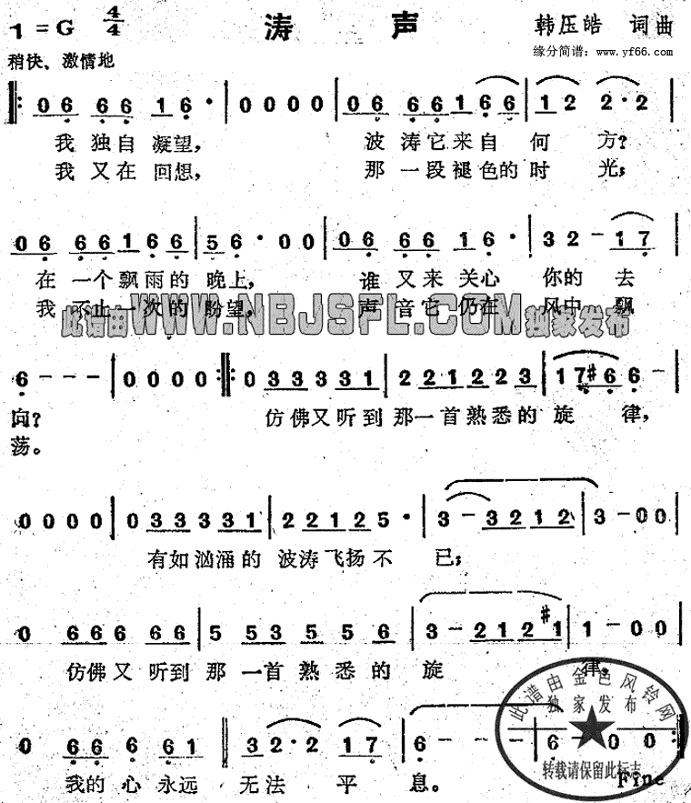 涛声简谱上传者为网友上传,原创作者为网络转载,歌曲原唱歌手为佚名,本简谱为图片格式,表现形式为,音乐性质为流行金曲。