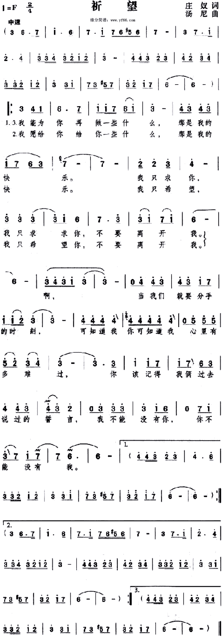 祈望简谱上传者为网友上传,原创作者为网络转载,歌曲原唱歌手为佚名,本简谱为图片格式,表现形式为,音乐性质为流行金曲。