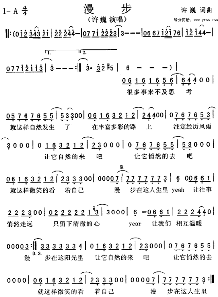漫步简谱上传者为网友上传,原创作者为网络转载,歌曲原唱歌手为佚名,本简谱为图片格式,表现形式为,音乐性质为流行金曲。