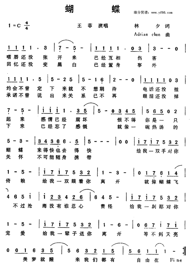 蝴蝶简谱上传者为网友上传,原创作者为网络转载,歌曲原唱歌手为佚名,本简谱为图片格式,表现形式为,音乐性质为流行金曲。
