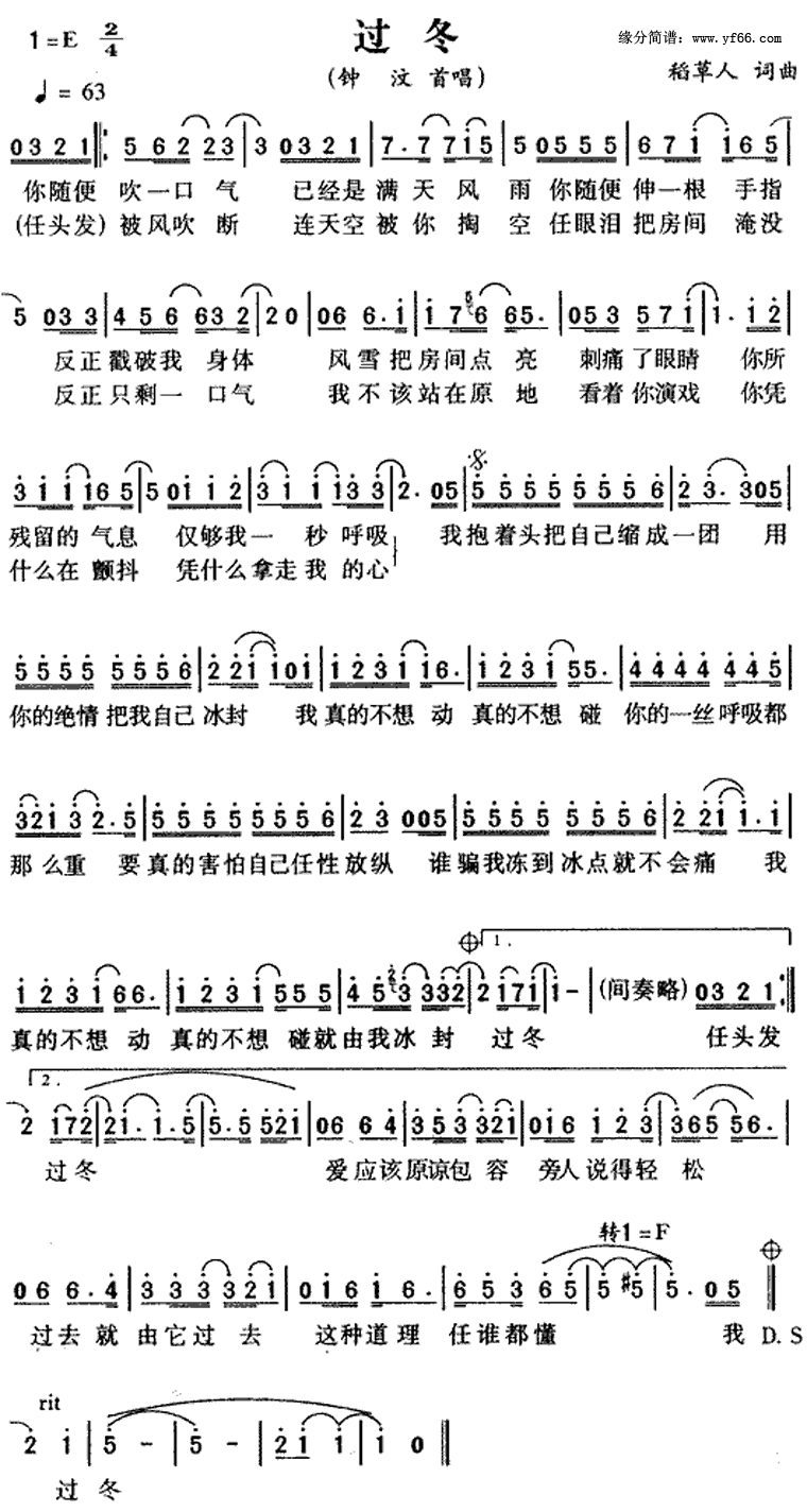过冬简谱上传者为网友上传,原创作者为网络转载,歌曲原唱歌手为佚名,本简谱为图片格式,表现形式为,音乐性质为流行金曲。