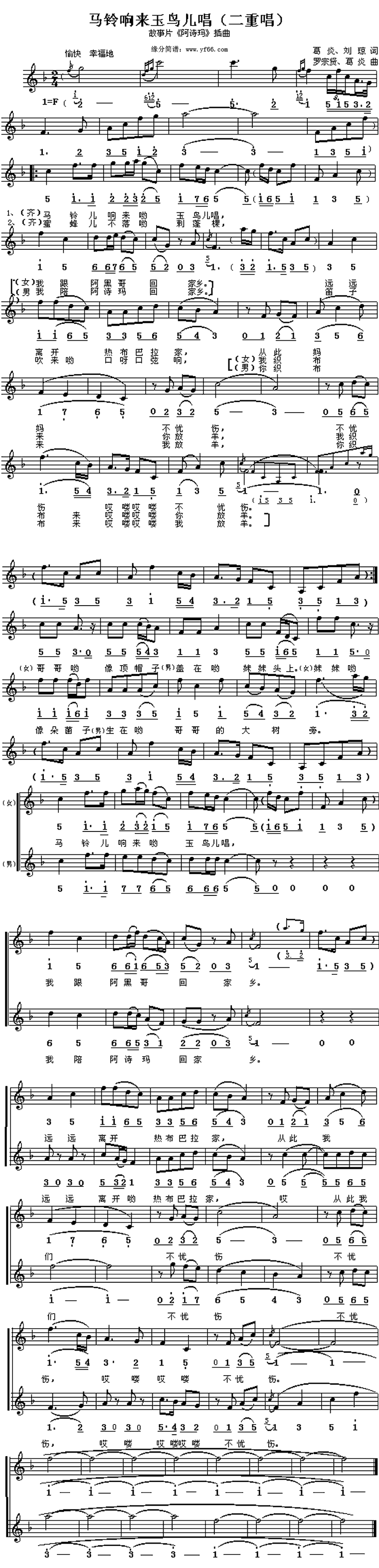 马铃儿响来玉鸟儿唱简谱