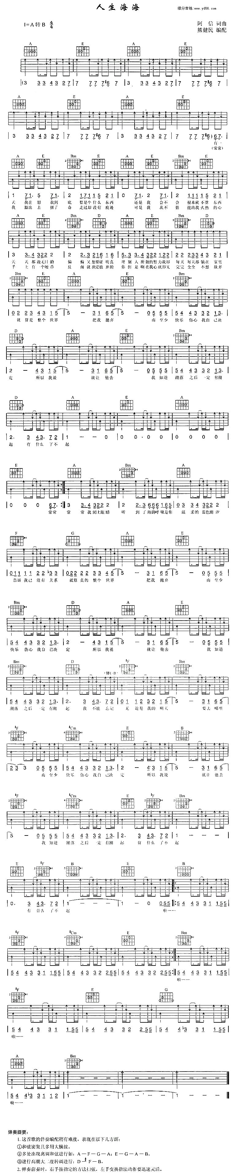 人生海海简谱