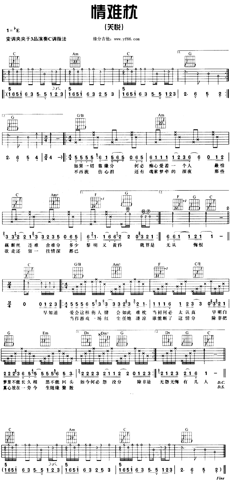 情难枕简谱上传者为网友上传,原创作者为网络转载,歌曲原唱歌手为佚名,本简谱为图片格式,表现形式为,音乐性质为流行金曲。