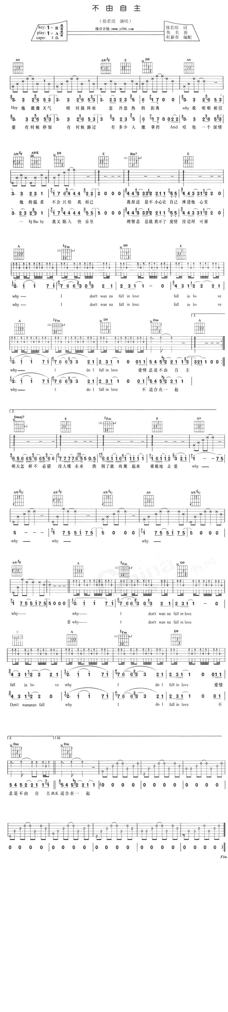 不由自主简谱上传者为网友上传,原创作者为网络转载,歌曲原唱歌手为佚名,本简谱为图片格式,表现形式为,音乐性质为流行金曲。