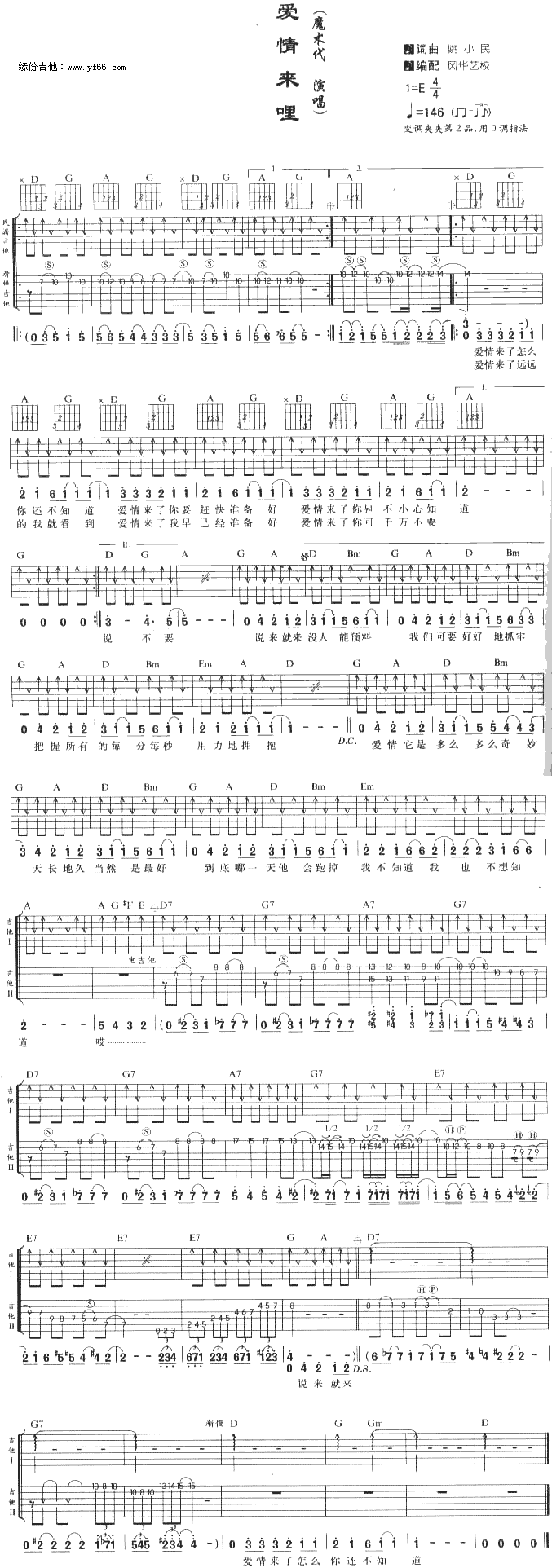 爱情来哩简谱上传者为网友上传,原创作者为网络转载,歌曲原唱歌手为佚名,本简谱为图片格式,表现形式为,音乐性质为流行金曲。