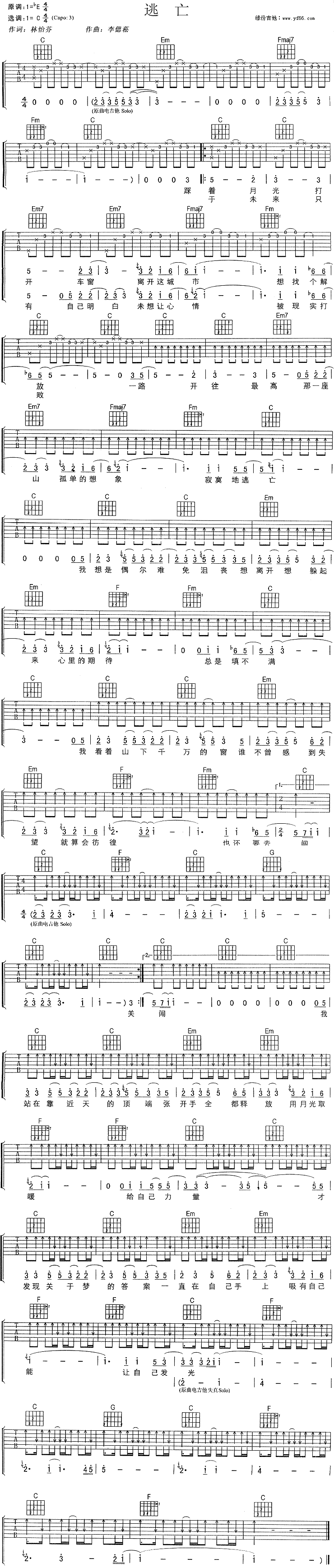 逃亡简谱上传者为网友上传,原创作者为网络转载,歌曲原唱歌手为佚名,本简谱为图片格式,表现形式为,音乐性质为流行金曲。