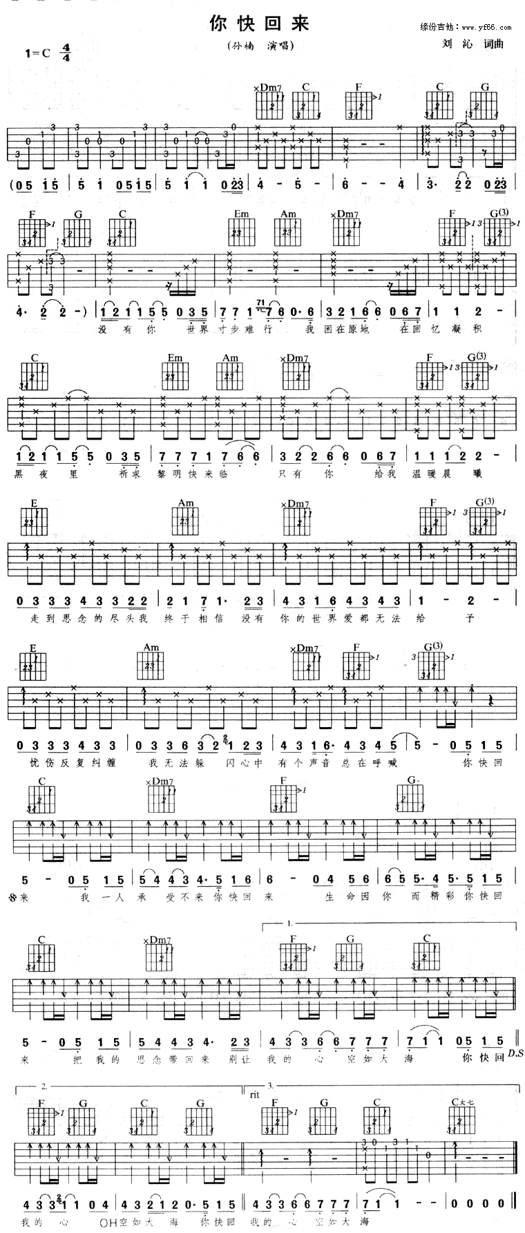 你快回来简谱上传者为网友上传,原创作者为网络转载,歌曲原唱歌手为佚名,本简谱为图片格式,表现形式为,音乐性质为流行金曲。