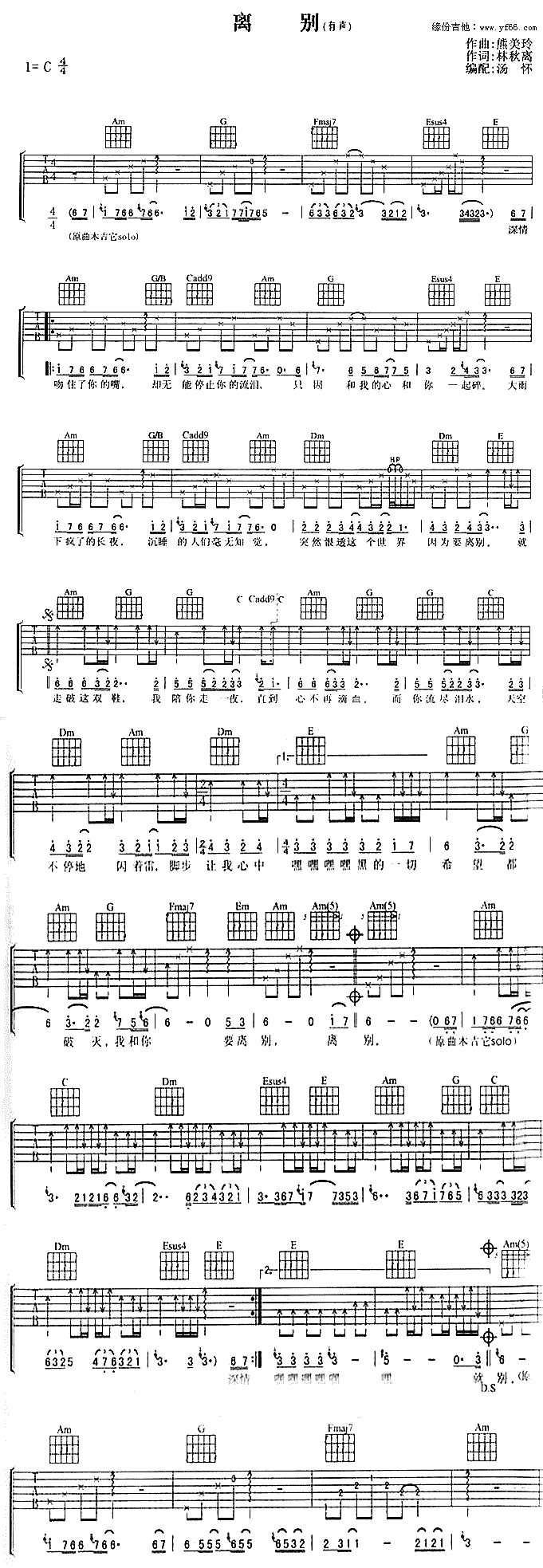 离别简谱上传者为网友上传,原创作者为网络转载,歌曲原唱歌手为佚名,本简谱为图片格式,表现形式为,音乐性质为流行金曲。