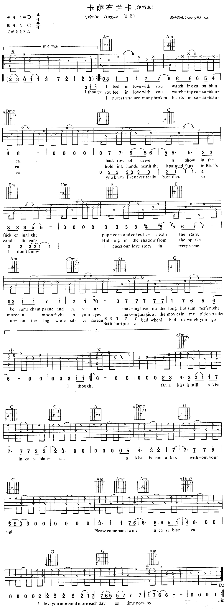 卡萨布兰卡简谱上传者为网友上传,原创作者为网络转载,歌曲原唱歌手为佚名,本简谱为图片格式,表现形式为,音乐性质为流行金曲。