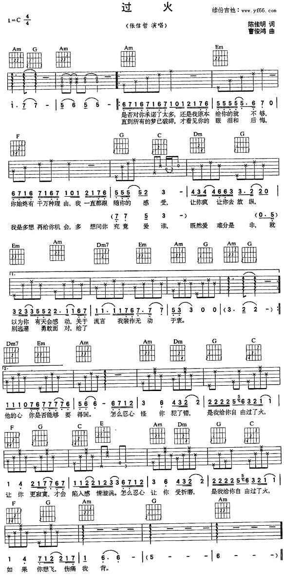 过火吉他谱 高清弹唱