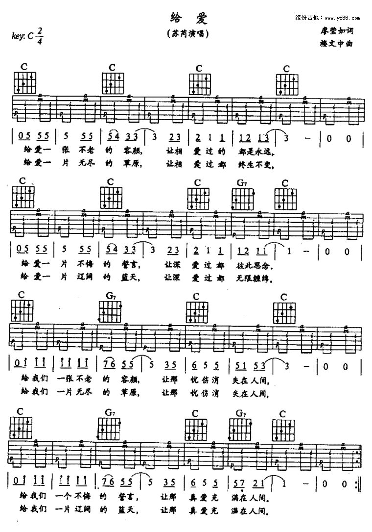 给爱简谱上传者为网友上传,原创作者为网络转载,歌曲原唱歌手为佚名,本简谱为图片格式,表现形式为,音乐性质为流行金曲。