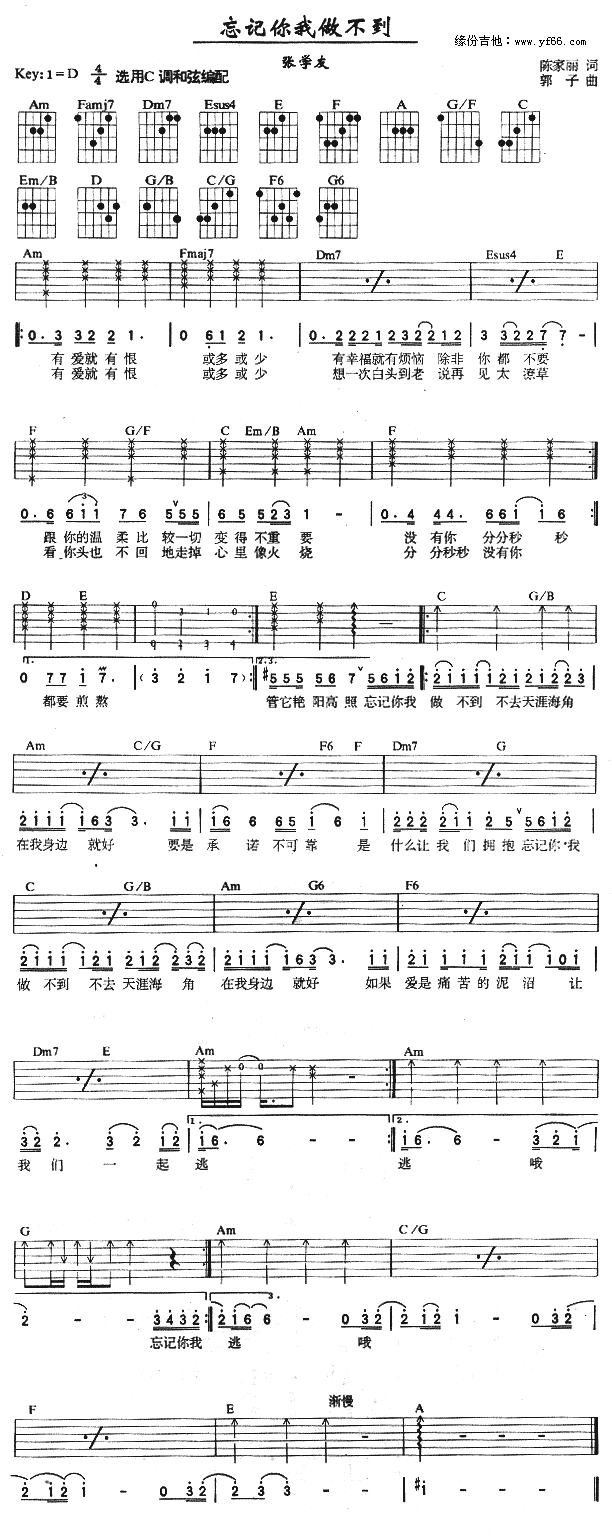 忘记你我做不到简谱上传者为网友上传,原创作者为网络转载,歌曲原唱歌手为佚名,本简谱为图片格式,表现形式为,音乐性质为流行金曲。
