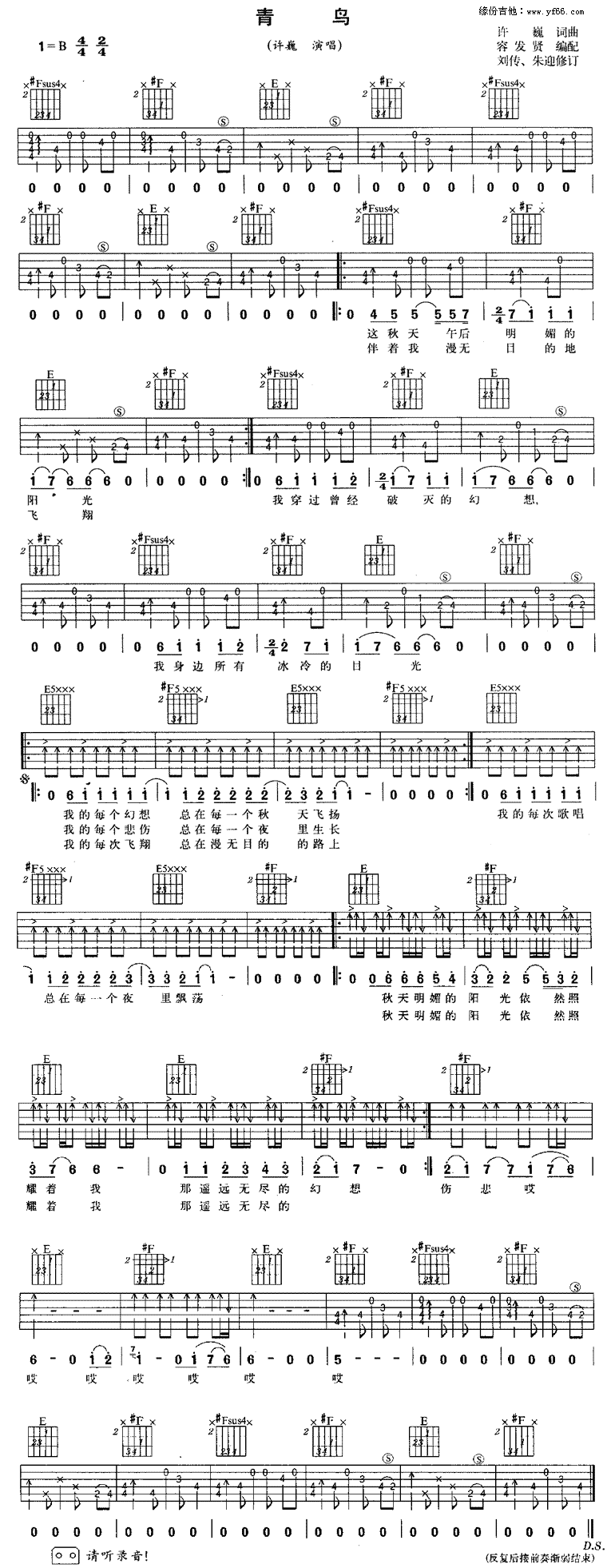 青鸟简谱上传者为网友上传,原创作者为网络转载,歌曲原唱歌手为佚名,本简谱为图片格式,表现形式为,音乐性质为流行金曲。
