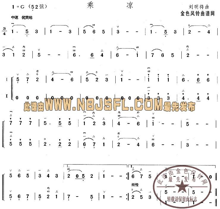乘凉简谱上传者为网友上传,原创作者为网络转载,歌曲原唱歌手为佚名,本简谱为图片格式,表现形式为,音乐性质为流行金曲。