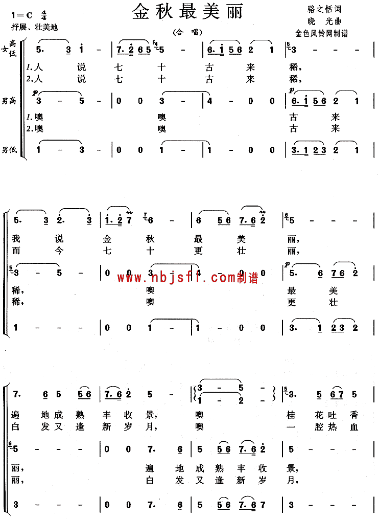 金秋最美丽简谱上传者为网友上传,原创作者为网络转载,歌曲原唱歌手为佚名,本简谱为图片格式,表现形式为,音乐性质为流行金曲。