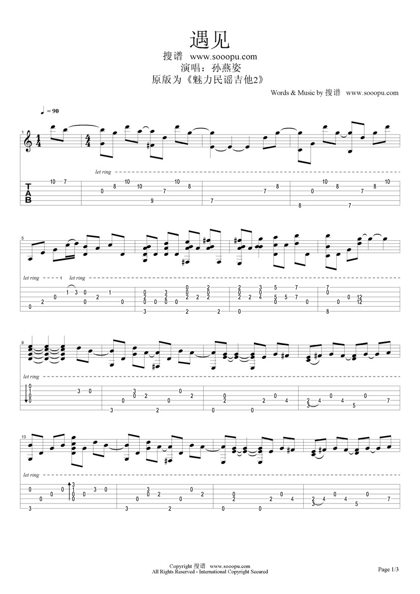 上传者为网友上传,原创作者为网络转载,歌曲原唱歌手为孙燕姿,本吉他谱为图片格式,表现形式为六线谱,简谱+和弦,音乐性质为流行金曲,